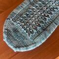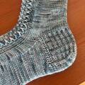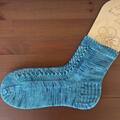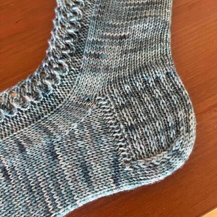 strømper strikkes oppefra og ned, med et elegant hulmønster ned langs oversiden